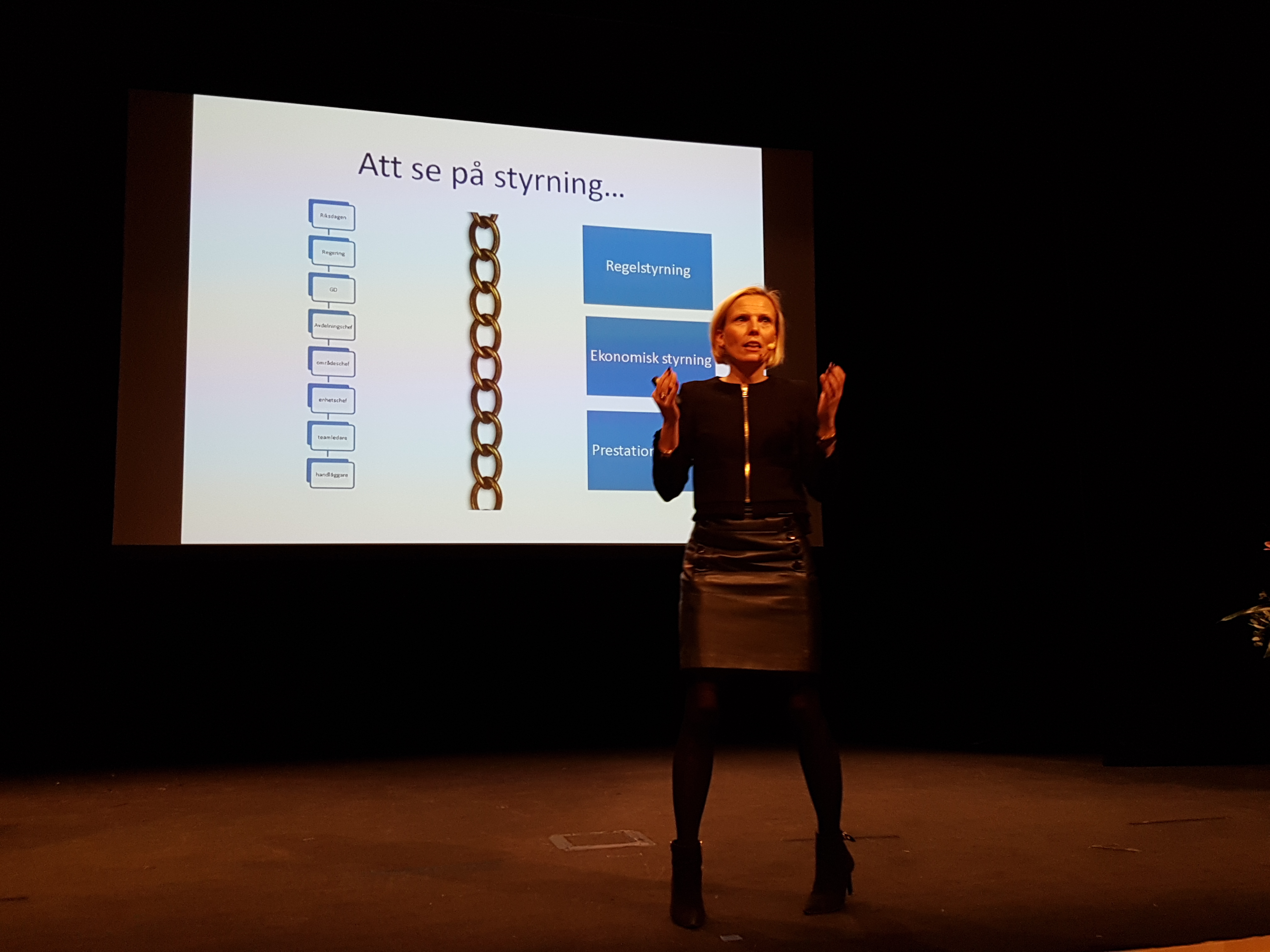 ”Det här är statens styrsystem från regeringen till handläggare. Jag tror man vinner på att se styrning på annat sätt. Inte tabeller utan se värdet som offentlig sektor skapar. I mötet med människan skapas värdet.” Kloka ord från Laura Hartman.